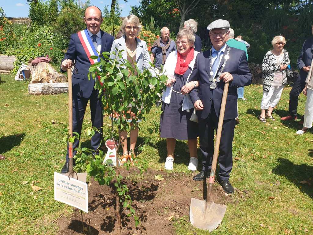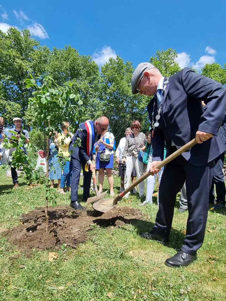 Der Samstagvormittag war dem offiziellen Empfang durch die Stadt Amboise vorbehalten. Im Foyer des Theaters wurden wir von Bürgermeister Thierry Boutard begrüßt. Mit einer kurzweiligen und launigen Rede ließ er unterschiedliche Aspekte der langjährigen Partnerschaft aufscheinen, wobei er wiederholt unterstrich, dass die Zukunft auch dieser Beziehung bei der Jugend liege. Diese müsse interessiert und aktiviert werden, eine solche Verbindung mit Leben zu füllen, um sie auch zukünftig fortsetzen zu können. Dabei sagte er die volle Unterstützung seitens der Stadt zu und betonte, dass er als belastbares Fundament dazu das auf Anhieb ausgezeichnete und freundschaftliche Verhältnis zu seinem Bopparder Amtsbruder sehe. Dieser griff in seiner Antwort sofort und uneingeschränkt diesen Gedanken auf und gab der Hoffnung Ausdruck, dass sich vielleicht schon beim Besuch der Amboiser Freunde 2023 in Boppard eine Entwicklung in diese Richtung zeige. Nachdem dann die französische Vorsitzende im Namen des dortigen Freundeskreises nochmals Gedanken zu dieser Partnerschaft vorgetragen hatte, wurden Gastgeschenke ausgetauscht und mit einem Glas Wein auf das gegenseitige Wohl angestoßen. Der offizielle Teil des Vormittags fand seinen Abschluss in einem weiteren kleinen Höhepunkt. Der gesamte „Tross“ aus Amboiser und Bopparder Freunden zog – angeführt von den beiden Bürgermeistern, die jeweils eine große Schaufel geschultert hatten – zum Uferbereich an der Loire. Dort wurde in einem Grünstreifen in der Nähe eines schon wachsenden „Friedensbaums“ eine Rheinische Schattenmorelle als Gastgeschenk der Stadt Boppard gepflanzt. Sie ist (wie einige andere Kirschenarten auch) Teil des UNESCO Welterbes Mittelrhein, und möge erfolgreich in der französischen Erde verwurzeln!